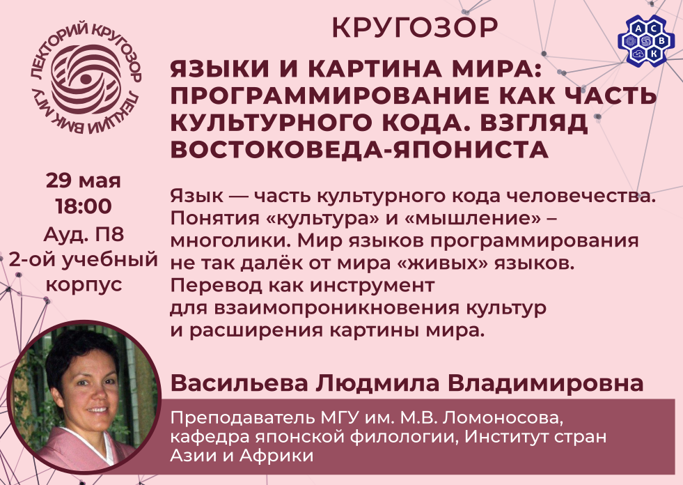 Язык — часть культурного кода человечества. Понятия «культура» и «мышление» — многолики. Мир языков программирования не так далёк от мира «живых» языков. Перевод как инструмент для взаимопроникновения культур и расширения картины мира.